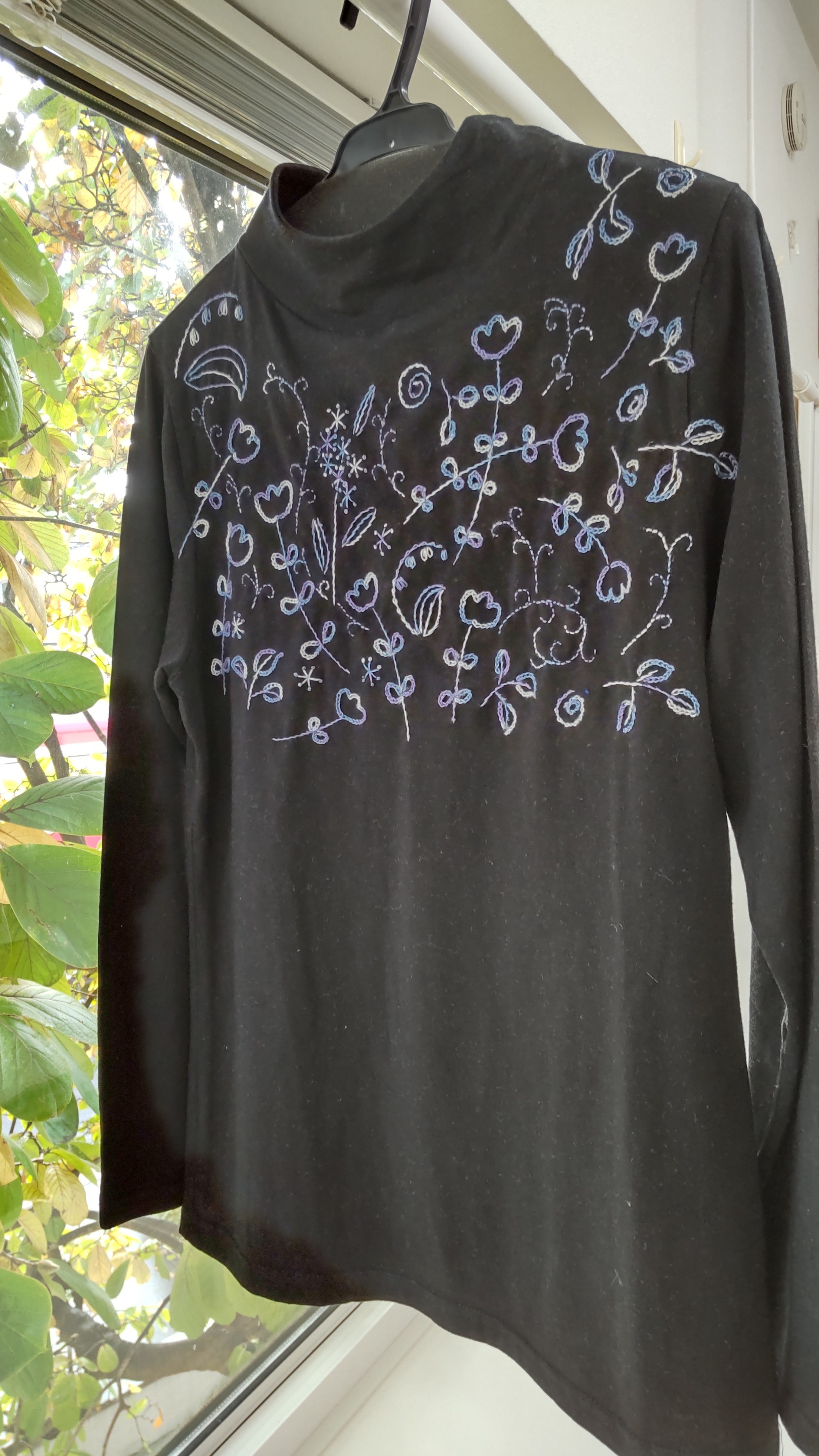 講習会のお知らせ 10月ももう半ば、今年もあと10週程を残すのみです。冬物に袖を通すのはいつ頃でしょうか。そんな今を考えて、今月黒地の色々な素材、デザインのTシャツを集めて講習します。ラメ入りのやわらかな糸にビーズも加えて、線を集めたラフなデザインをちょっとおしゃれにまとめました。素材は綿、ウール、アルパカ、アクリル、セルロースなど、デザインはラウンドネック、タートルネック、ハイネック、ギャザーネックなど。2~3枚程の物もありますので早い物勝ちになりますが、色々あって悩んでしまうかもです。 そしてもうひとつ、デンマークのクロスステッチから第2弾「クリスマスの窓辺」をご用意しました。更におまけです。ご希望の声がありましたので、ハロウィンの柄を洋書で見つけて材料をセットしました。ちょっとギリギリですが…。