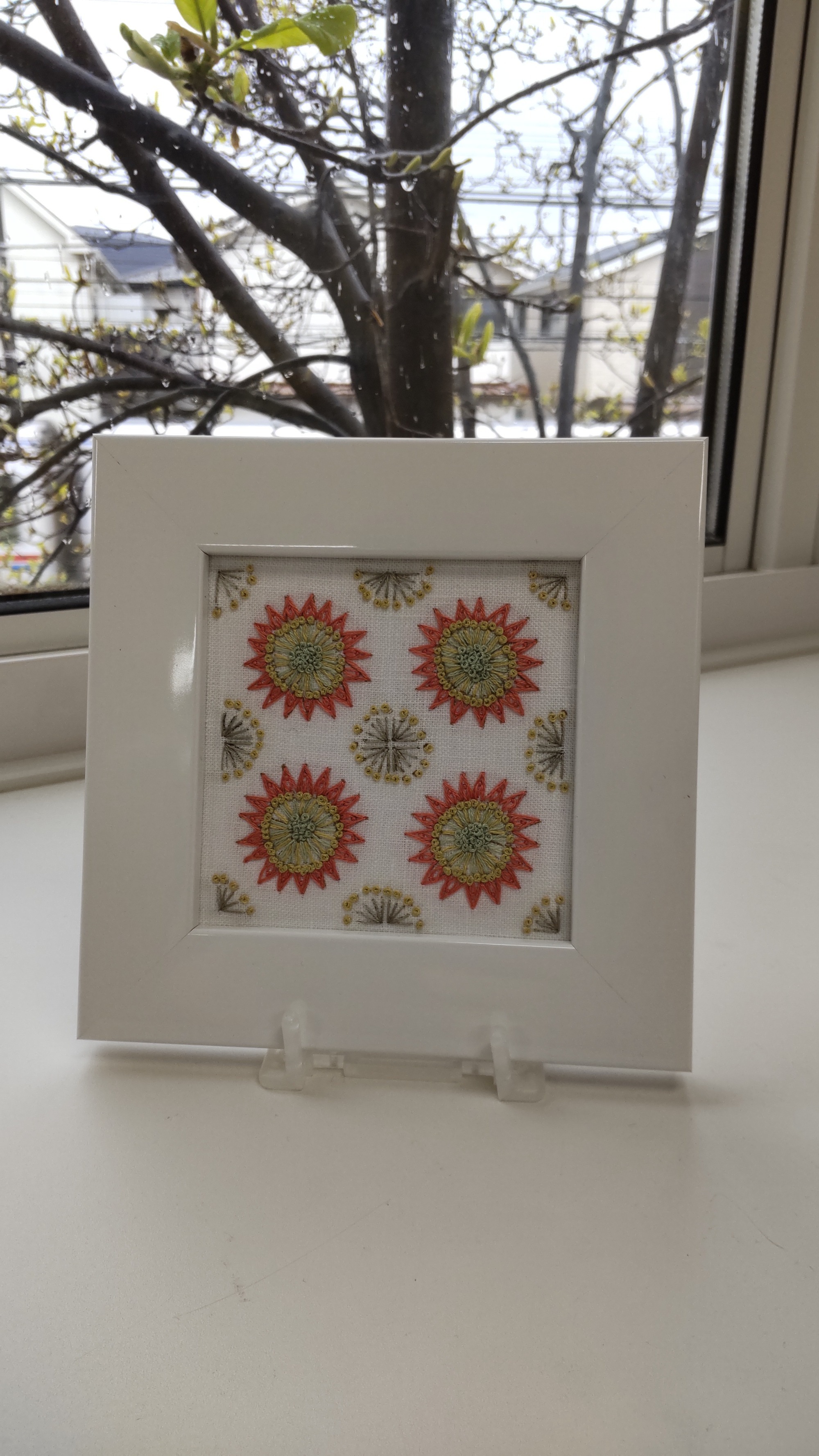 月日が飛ぶように過ぎて3月も残りわずか。講習会のお知らせ遅くなりました。何にしようか、色々考えて、考えて、やっと小さなものにたどり着きました。ピンクションを作ろうと思います。花のモチーフ、ちょっと珍しい“プロテア”をデザインしました。同じモチーフを10㎝角のミニ額にも。ちょっとおしゃれなインテリア小物になると思います。そしてもう1点。講習会までに間に合うか…、ホームウエアエプロンの胸にも同じデザインを。間に合わない場合は注文をお受けする事でご了承下さい。